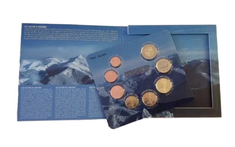 1, 2, 5, 10, 20 y 50 céntimos, 1 y 2 Euros. Cuproníquel. 2014. Estuche Oficial Serie Euros Andorra. Calidad BU.