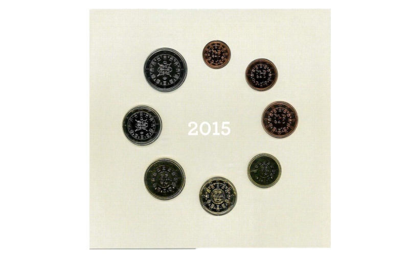 1, 2, 5, 10, 20 y 50 céntimos, 1 y 2 Euros. Cuproníquel. 2015. Estuche Oficial Serie Euros Portugal. Calidad BU.