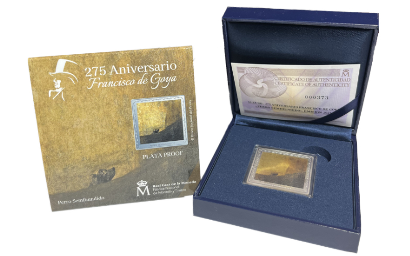 10 Euros. 1oz. Plata (.999). 2021. 275 Aniversario de Francisco de Goya “Perro Semihundido”. Calidad PROOF. En estuche y caja original, con certificado.