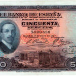 50 Pesetas 17 de Mayo 1927 Sello en seco Gobierno Provisional de la República 14 Abril 1931 EBC
