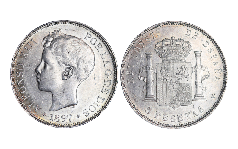 5 Pesetas. Plata. 1897*18-97. SGV. Calidad SC