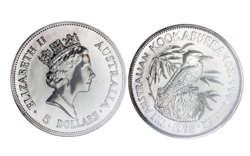 5 Dólares. Plata (1oz. 999). 1990. Kookaburra. Calidad SC.