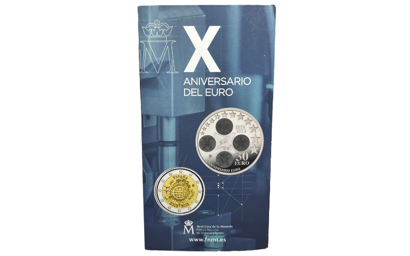 30 Euros y 2 Euros. Plata (925) y cuproníquel. 2012. X Aniversario del Euro. Calidad SC.