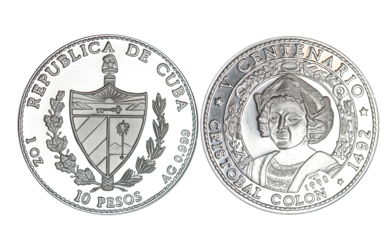Cuba 10 Pesos 1990 V Centenario Cristóbal Colón PROOF