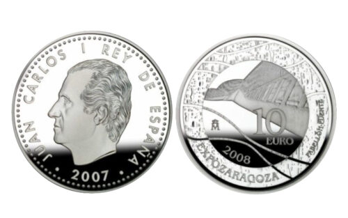Inicio › Monedas › Españolas › Juan Carlos I (1975-2014) › FNMT › España 10 Euros 2008 Exposición de Zaragoza Pabellón Puente PROOF