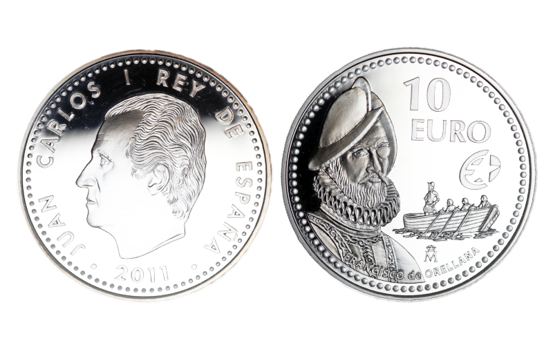 10 Euros. Plata. 2011. Francisco de Orellana. Calidad PROOF. Sin caja ni certificado. En cápsula.