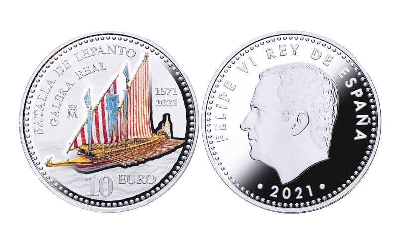 10 Euros. Plata (925). 2021. 450 Aniversario de la Batalla de Lepanto. Galera Real. Calidad PROOF. En estuche original, con cápsula y certificado.