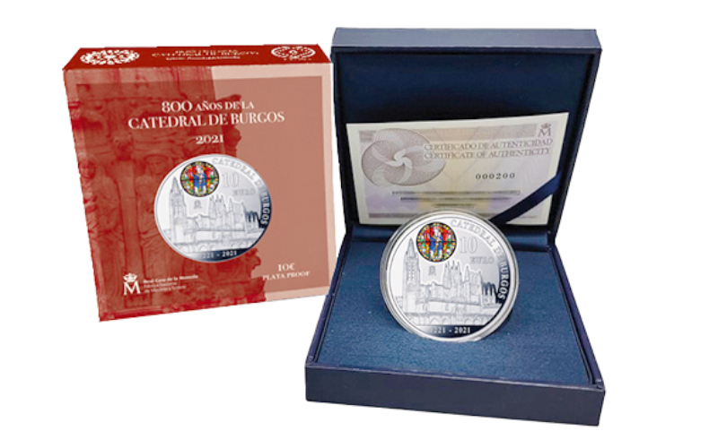 10 Euros. Plata (925). 2021. 800 Años de la Catedral de Burgos. Calidad PROOF. En estuche original, con cápsula y certificado.