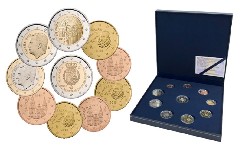1, 2, 5, 10, 20 y 50 céntimos, 1 y 2 Euros. Cuproníquel. 2018. Estuche Oficial Serie Euros y moneda 2 Euros conmemorativa 50 Aniversario de S.M. Felipe VI. Calidad PROOF.