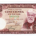 Inicio › Billetes › Españoles › Estado Español (1936-1975) › Estado Español 50 Pesetas 31 Diciembre 1951 Santiago Rusiñol Serie B SC