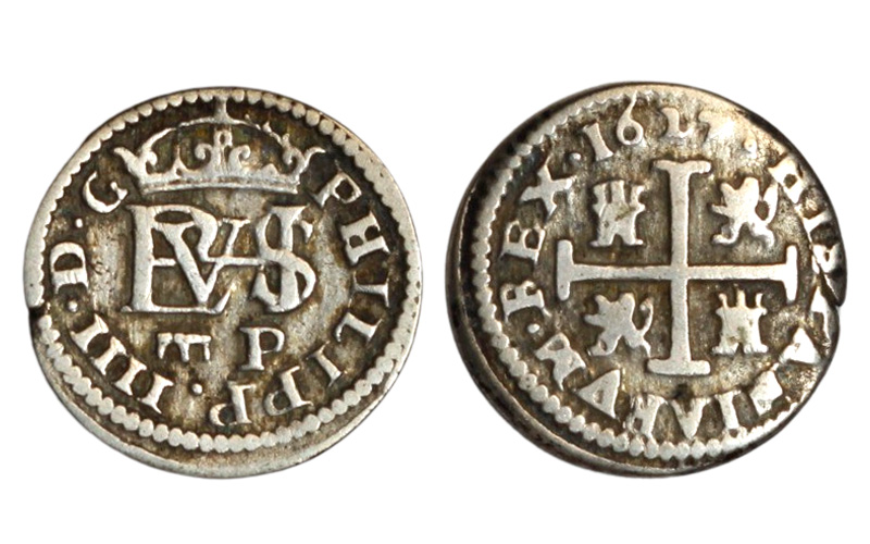 4 Maravedís. Vellón. 1621-1626. A/Castillo; a dcha. numeral IIII; a izq. marca B; alrededor leyenda PHILIPPVS IIII D.G. R/ León a izq.; alrededor leyenda HISPANIARVM…