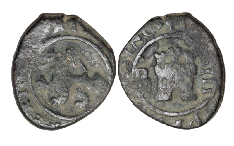 2 Maravedís. Vellón. 1474-1504. A/ Castillo; a la dcha. marca C y a la izq. marca armiño; alrededor leyenda FERDINANDVS ET EL. R/ León a…