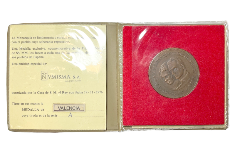 Medalla. Cobre. 19-11-1976. Serie A. Conmemoración de la Primera Visita de SS.MM. los Reyes a cada una de las capitales de España. Valencia. Calidad SC.