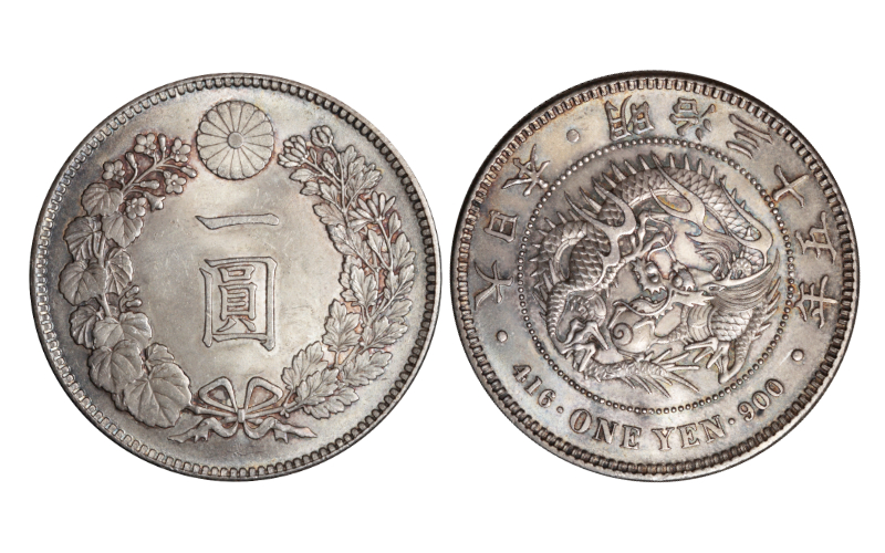 YA25.3. 1 Yen. Plata. 1892. Dragón. Calidad SC.
