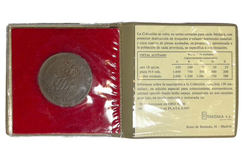 Medalla Conmemorativa de la Primera Visita de SS.MM. los Reyes a Valencia 1976 Serie A SC