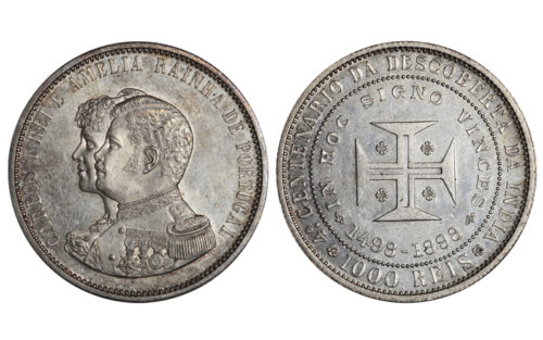 Inicio › Monedas › Extranjeras › Europa › Europa Sur › Portugal Carlos I y Amelia 1000 Reis 1898 IV Centenario Descubrimiento India EBC-SC