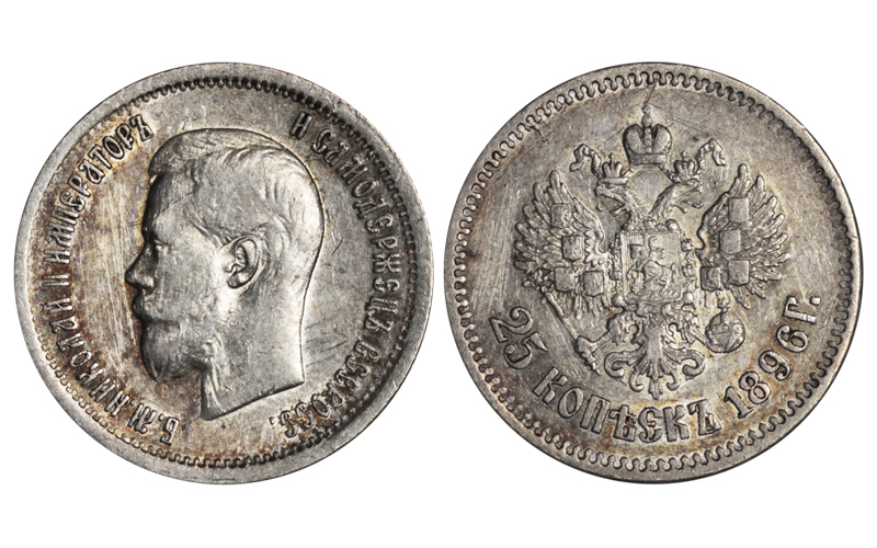 Y57. 25 Kopeks. Plata. 1896. Calidad EBC-