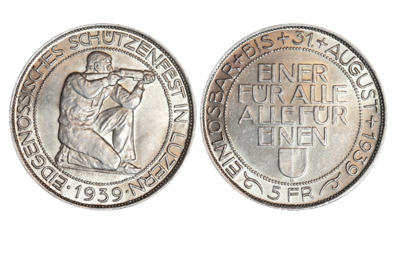 Y47. 5 Francos. Plata. 1939. Festival de Tiro de Lucerna. Calidad SC.