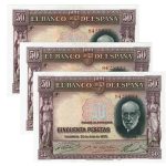 Trio correlativo 50 Pesetas 1935. Sin Serie. Calidad EBC+ a SC-