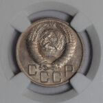 Metal. URSS. 20 Kopeks. 1948. Encapsulada por NGC. Calidad MS 62